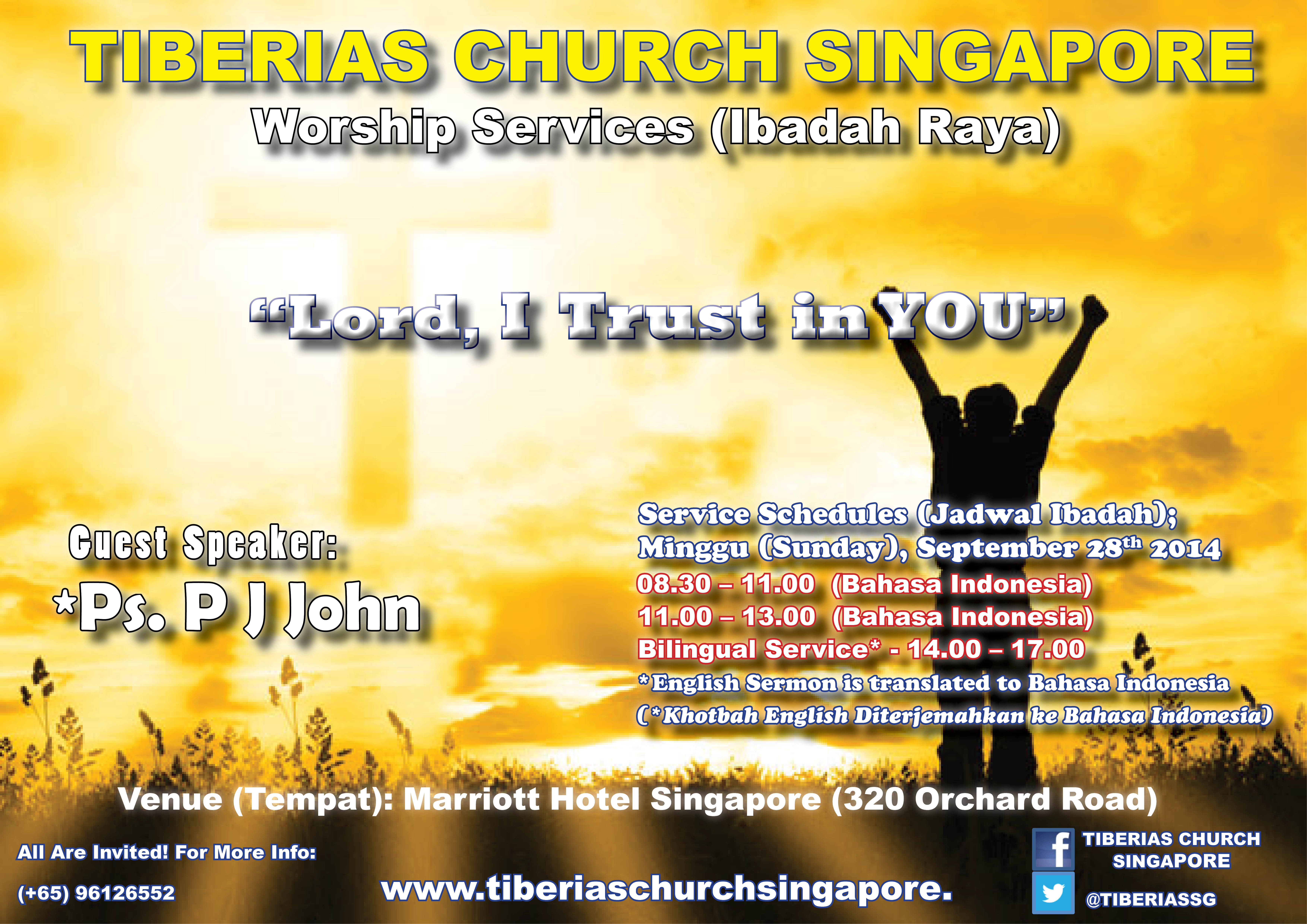 Announcements Sunday Service 28 September 2014 September 22, 2014 tiberiaschurchsingapore Sunday Service 28 September 2014 Share this: Click to share on Facebook (Opens in new window) Facebook Click to share on X (Opens in new window) X Like Loading... Related