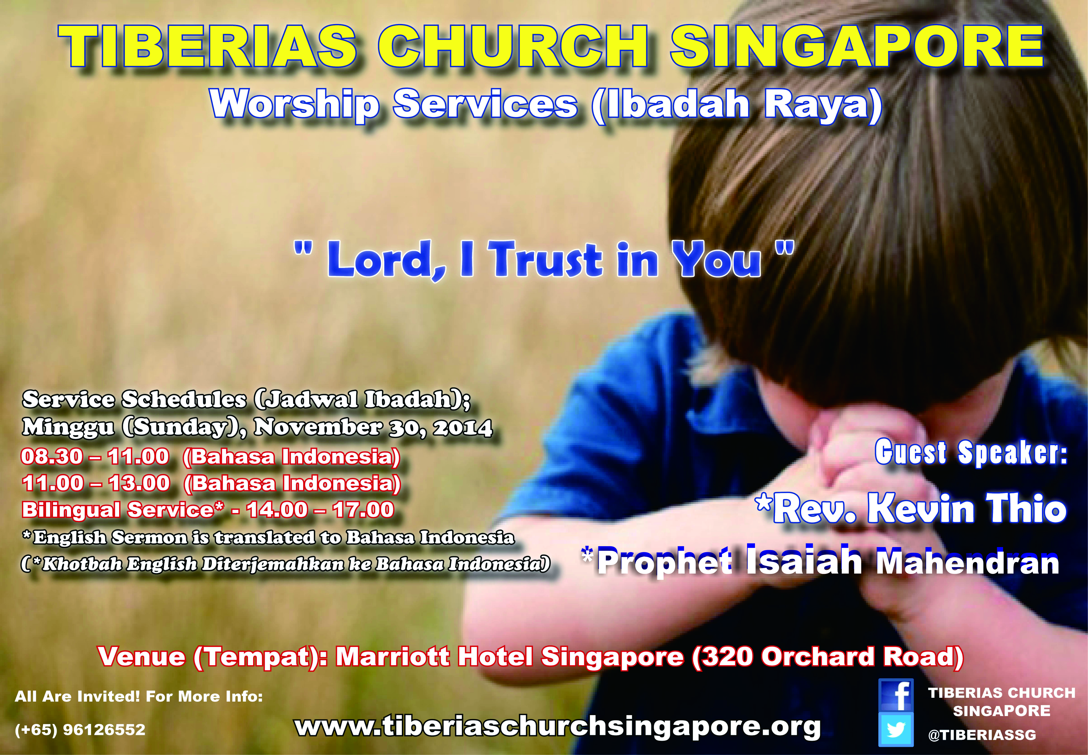 Announcements Sunday Service – 30 Nov 2014 November 28, 2014 tiberiaschurchsingapore Sunday Service 30 Nov 2014 Share this: Click to share on Facebook (Opens in new window) Facebook Click to share on X (Opens in new window) X Like Loading... Related