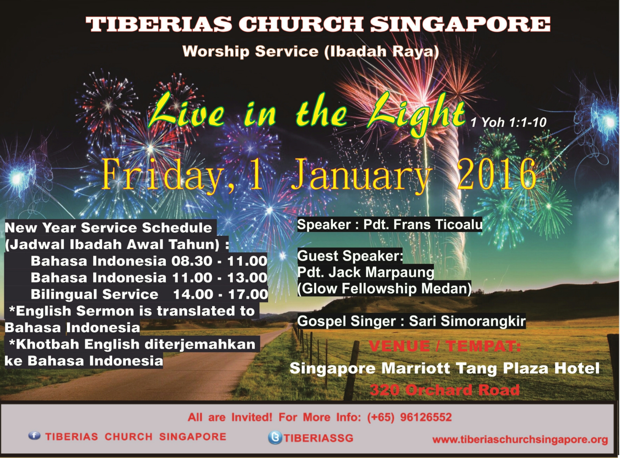 Announcements New Year Service 2016 Image December 6, 2015 tiberiaschurchsingapore Share this: Click to share on Facebook (Opens in new window) Facebook Click to share on X (Opens in new window) X Related
