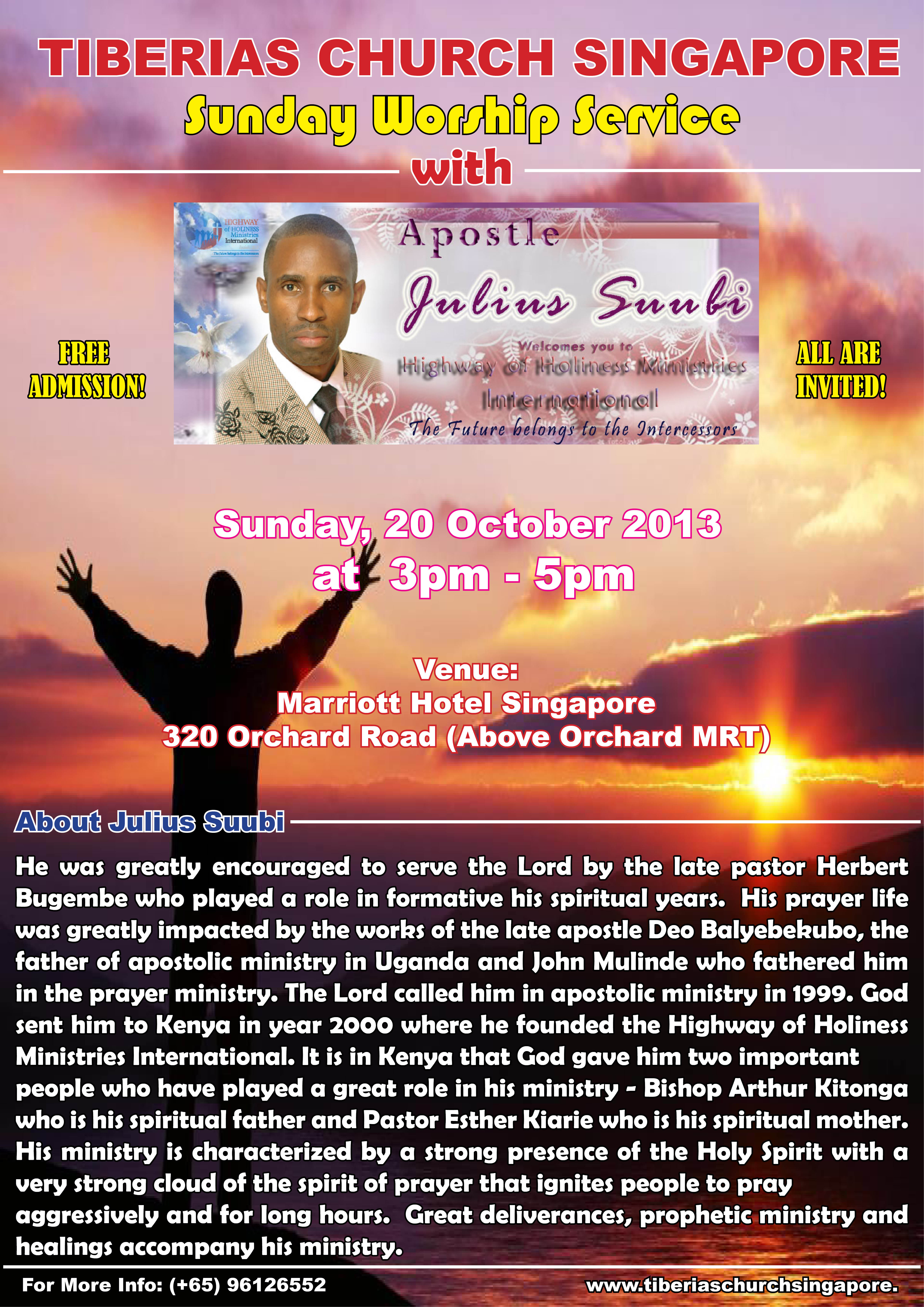 Announcements Special Sunday Service 20 October 2013 with Apostle Julius Suubi October 15, 2013 tiberiaschurchsingapore Apostle Julius Suubi (20-10-2013) 4th