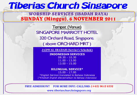Announcements Sunday Service 6 November 2011 October 29, 2011 tiberiaschurchsingapore Sunday Service 6 November 2011